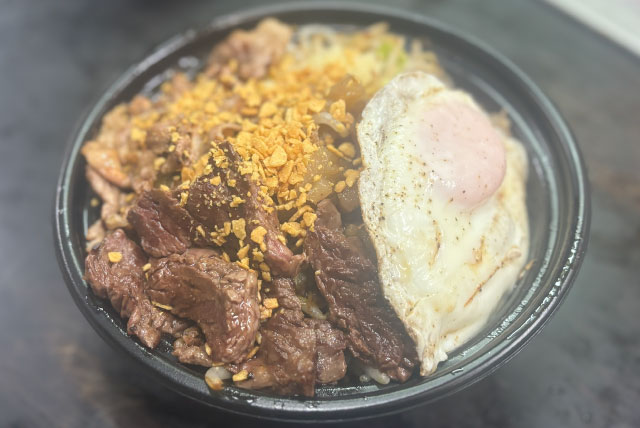 (牛ハラミ焼肉・牛カルビ焼肉・フライドガーリック・目玉焼きトッピング)